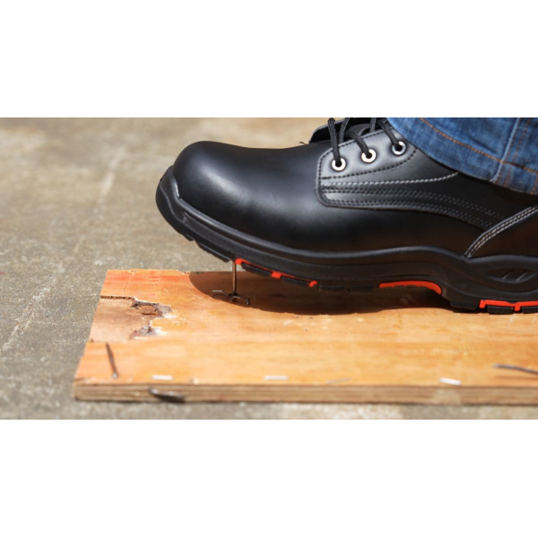 Lekkie trzewiki robocze wyposażone w elastyczną wkładkę antyprzebiciową oraz dwumateriałową podeszwę z antypoślizgowym bieżnikiem z gumy ze wstawkami z PU. Zwarta budowa i wstawki przy języku ograniczają przepuszczanie i wchłanianie wody.