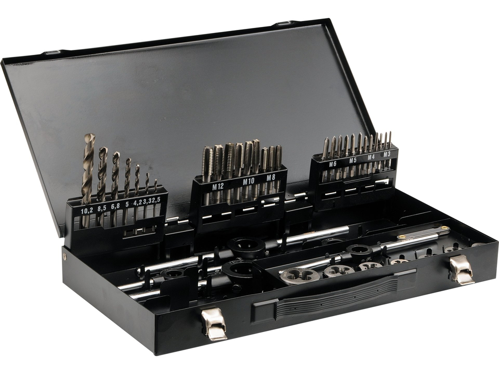 - Zestaw do tworzenia i naprawy gwintów metrycznych w zakresie od M3 do M12.