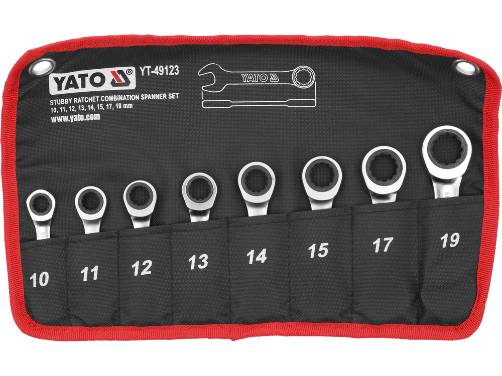 - 8 krótkich kluczy w rozmiarach 10, 11, 12, 13, 14, 15, 17, 19 mm