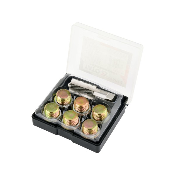 Zestaw umożliwia naprawę gwintów korków misy olejowej oraz skrzyni biegów.