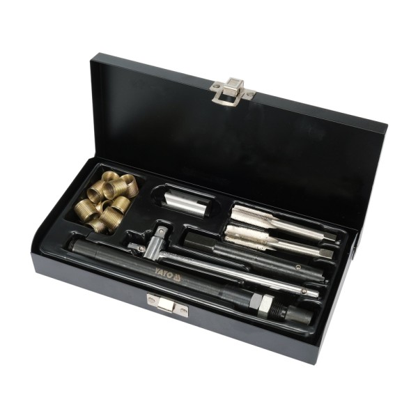 ZESTAW NAPRAWCZY ŚWIECY ZAPŁONOWEJ. ZAWIERA DEDYKOWANY GWINTOWNIK ORAZ 20 SZTUK SPECJALNYCH TULEI NAPRAWCZYCH. YT-17581