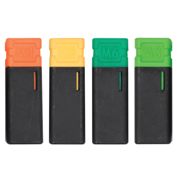 - Wymienne głowice w rozmiarach M4, M5, M6, M8 (łącznie 4 sztuki)