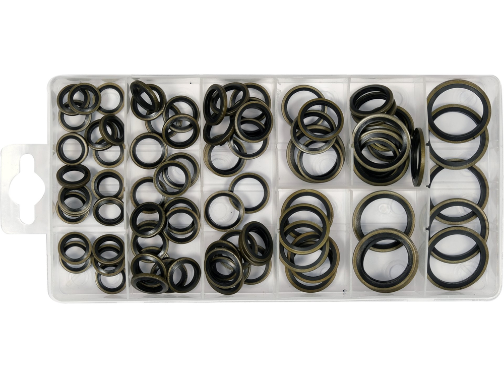 ZESTAW PODKŁADEK METALOWO GUMOWYCH. 90 SZTUK. MIX ROZMIARÓW YT-068581
