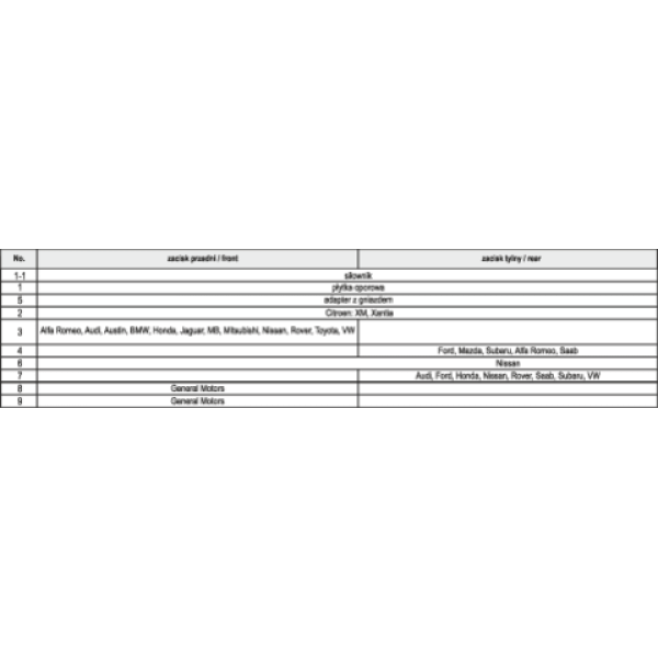 Kompatybilność z markami: Citroën (Xm, Xantia), Alfa Romeo, Audi, Austin, BMW, Honda, Jaguar, MB, Mitsubishi, Nissan, Rover, Toyota, VW, Ford, Mazda, Subaru, Saab, General Motors.