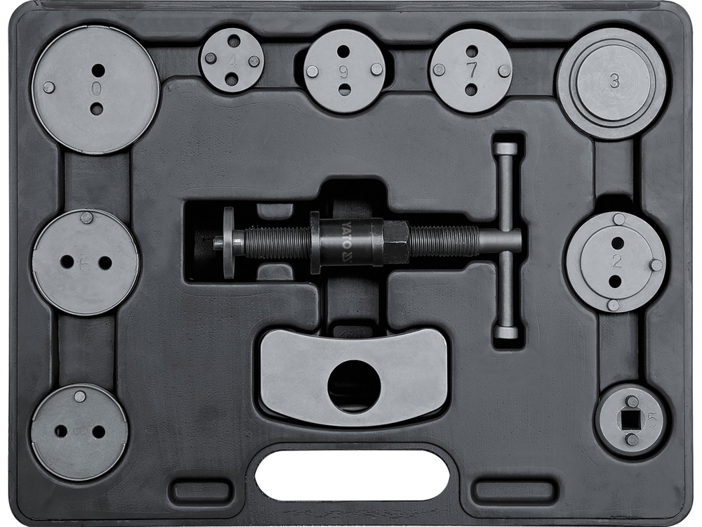 • Zestaw talerzyków umożliwiających wymianę tłoczków w różnych modelach samochodów
