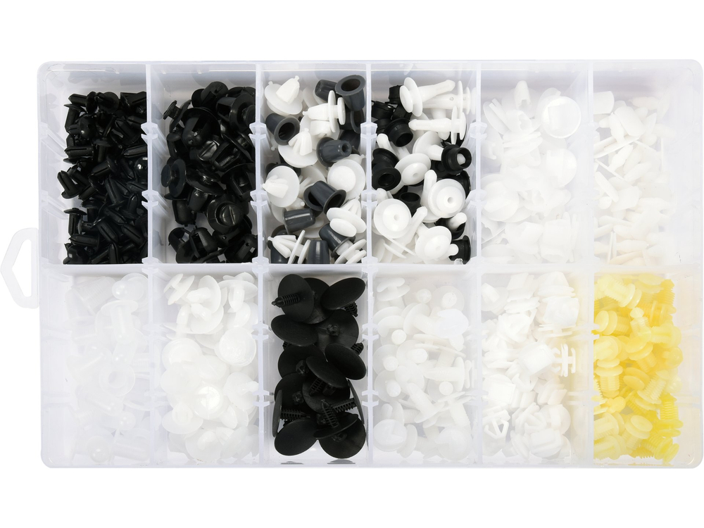 Zestaw zawiera 12 najpopularniejszych rodzajów spinek wykonanych z tworzywa sztucznego.