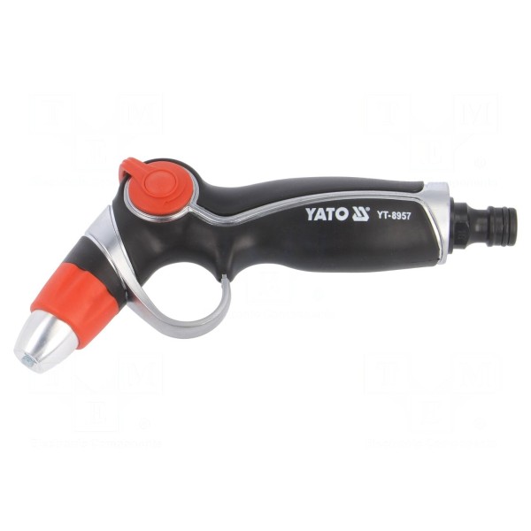 Zraszacz o konstrukcji pistoletowej przeznaczony do podlewania ogrodu. Urządzenie zostało wykonane z połączenia tworzywa ABS oraz aluminium, co zapewnia jego budowę.